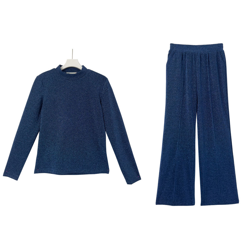 Women's Set Custom Fashion Spandex Long Sleeve Tops Casual Blouse Shirt and Wide Leg Pant Two Piece Set Christmas Tracksuit 2026