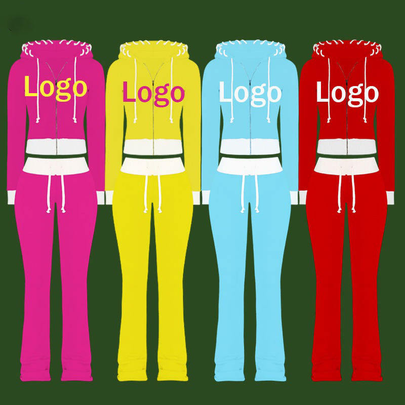 Women's Sets Custom Camo Printing Tracksuit Women Cotton Heavyweight Distressed Logo Streetwear Baggy Sweatpants and Hoodie Sets