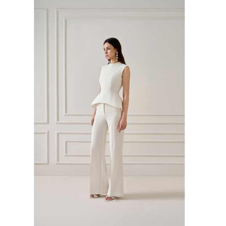 Elegant ODM Women's Blouses & Shirts LILA SAND JACQUARD PEPLUM Sleeveless Shirts for Women Sand Trend Women's Sets from Vietnam