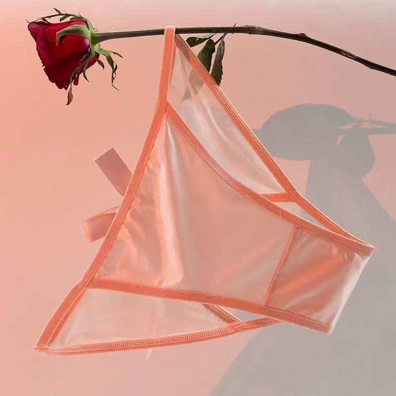 Women's Sexy Cotton High Waist Mid-Rise Thong Panties Transparent Lace Plus Size Satin Thin Condom Breathable Eco-Friendly Quick