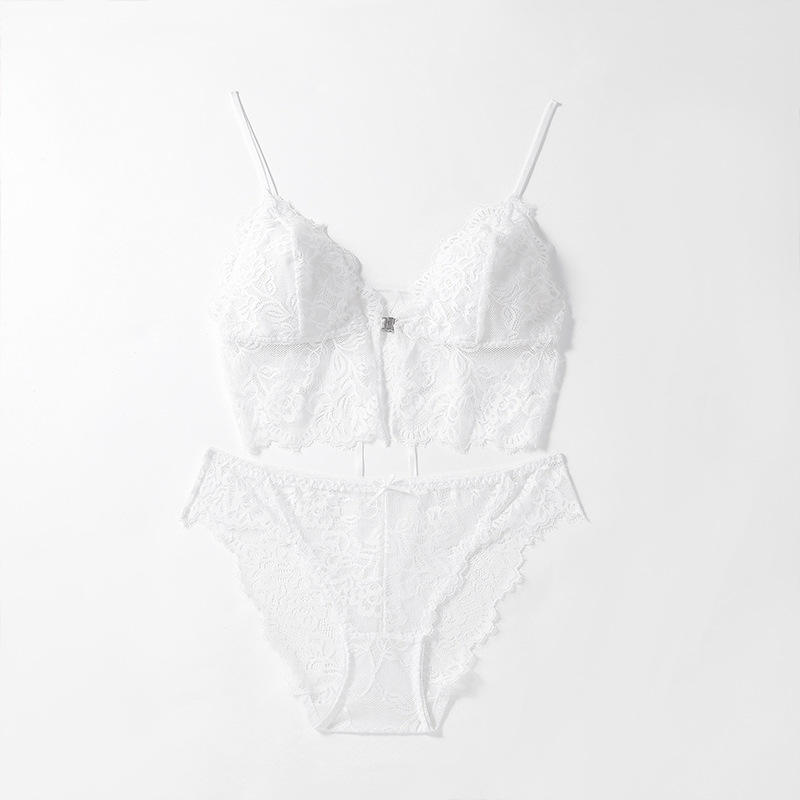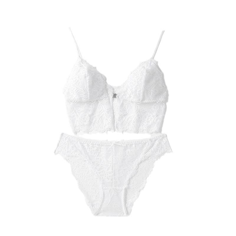 Women's Sexy Floral Embroidery Lace Bra Brief Set Crocheted Two-Piece Underwear