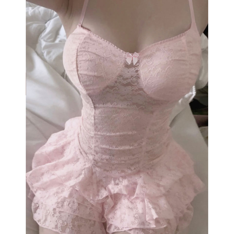 Women's Sexy Lace Tiered Bodysuit Dress | Floral Pattern Eco-Friendly Natural Waist Teddy Dress Breathable Fabric Plain Dyed