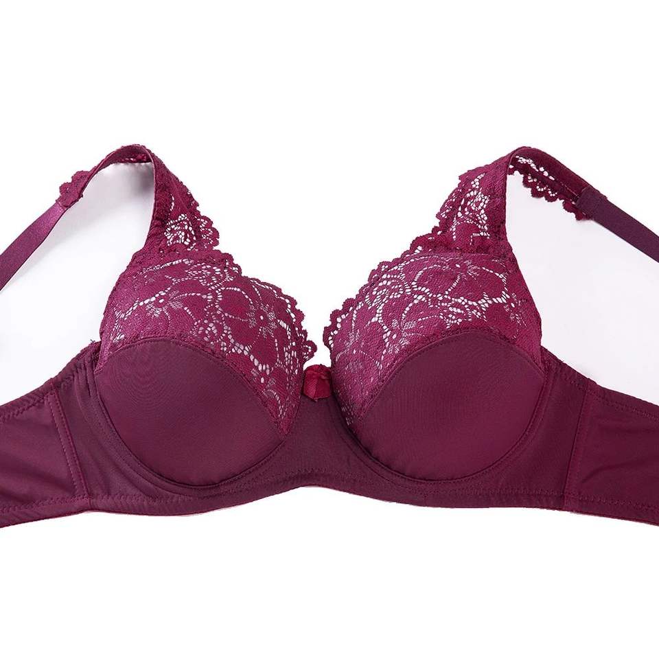 Women's Sexy New Hot Gorgeous Embroidery Floral Lace Brassiere Front Closure Wire-Free Plunge Lingerie with Cup Logo