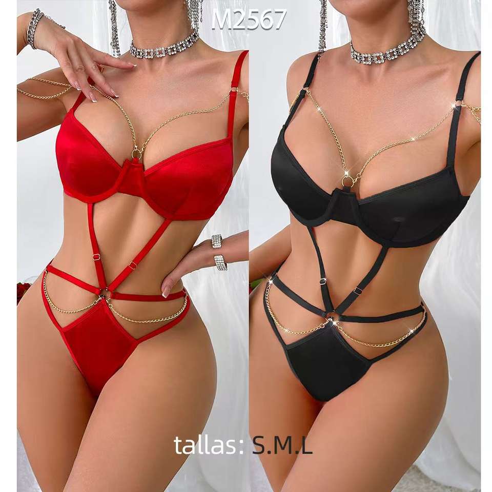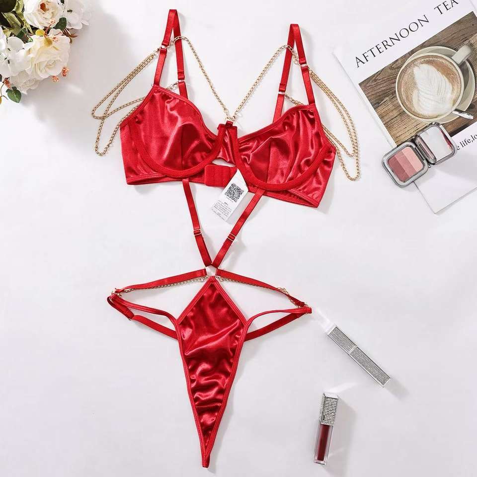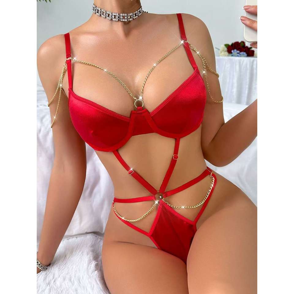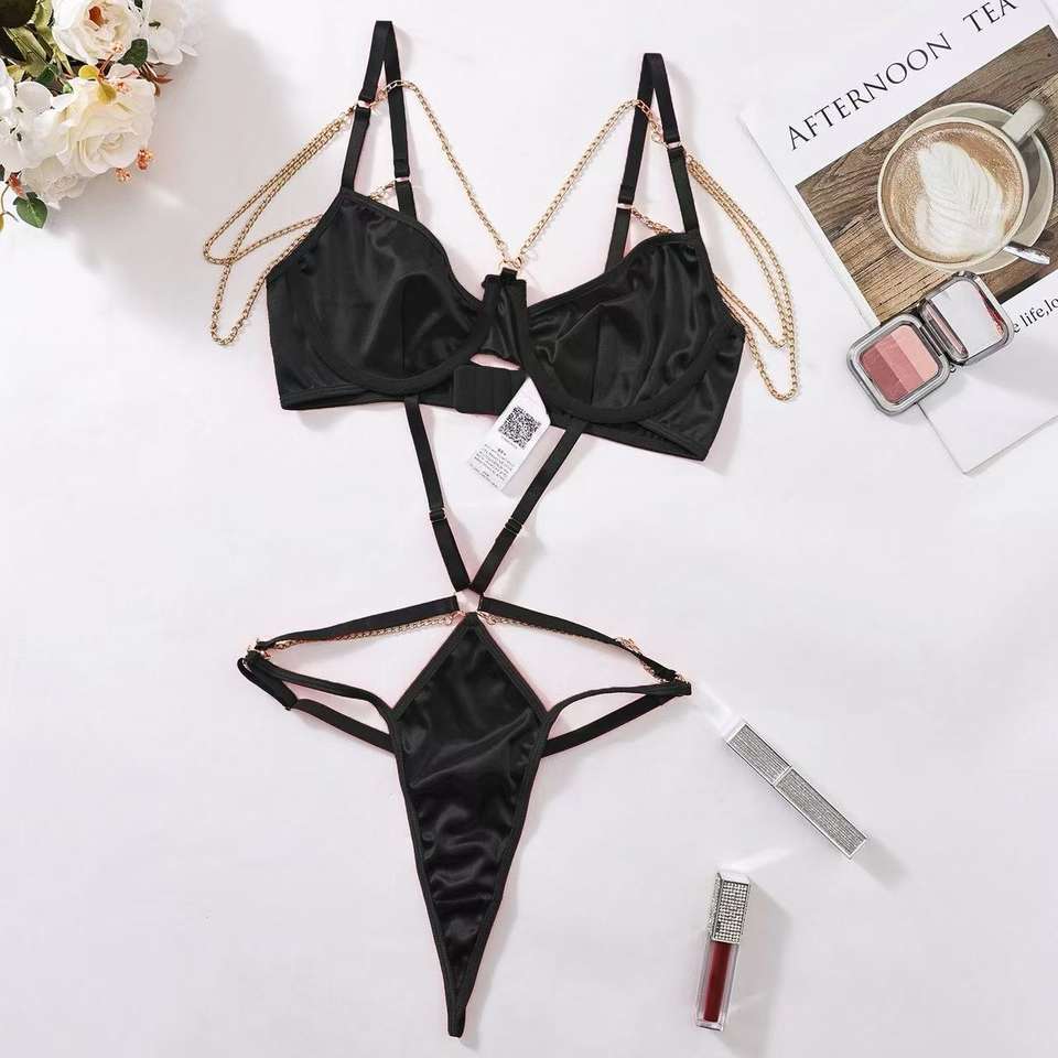Women's Sexy One Piece Lingerie Set Hollow Backless with Adjustable Straps Metal Chain XL Size OEM Wholesale Supplier for Export