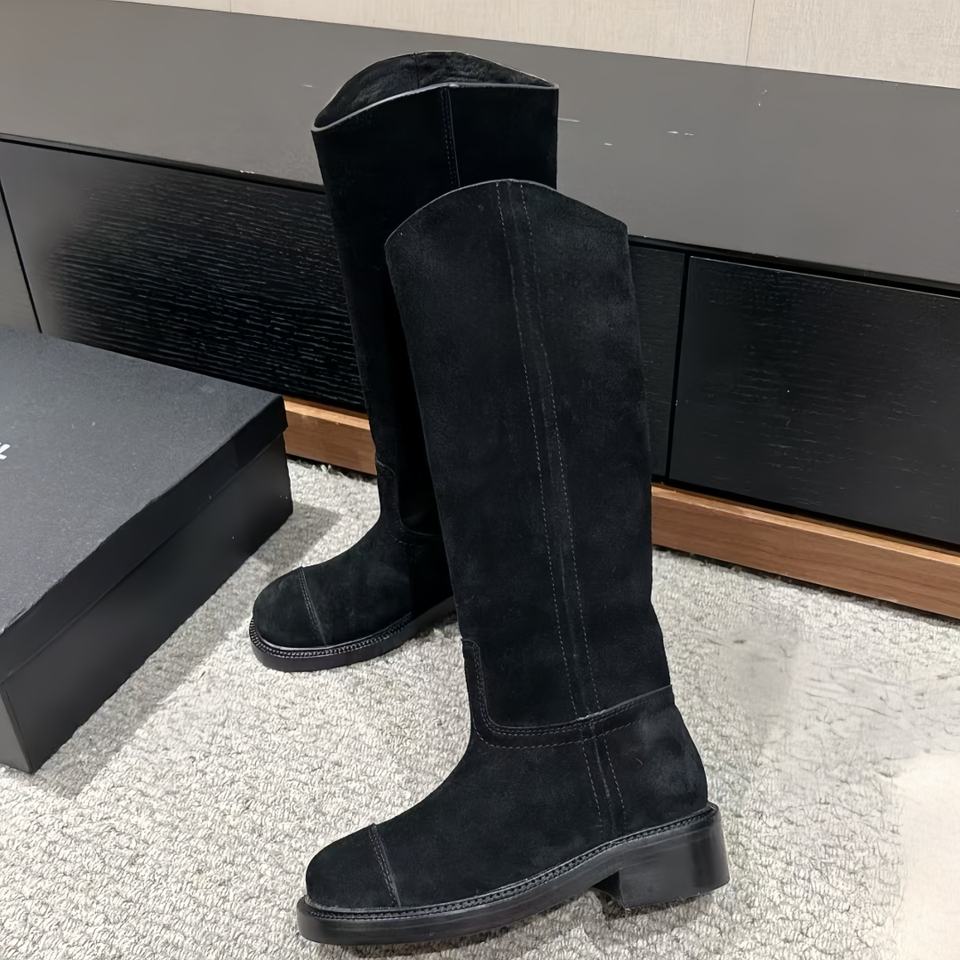 Women's Shoes High Quality Luxury Designer Leather Shoes Fashion Over-the-Knee Boots Round Toe Thigh High Flat Boots for Ladies