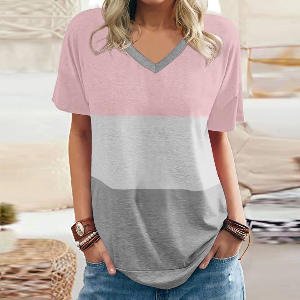 Women's Short Sleeve Ribbed T-Shirt Cotton Baby Knit Deep V-Neck T-Shirt for Women Ladies T Shirts
