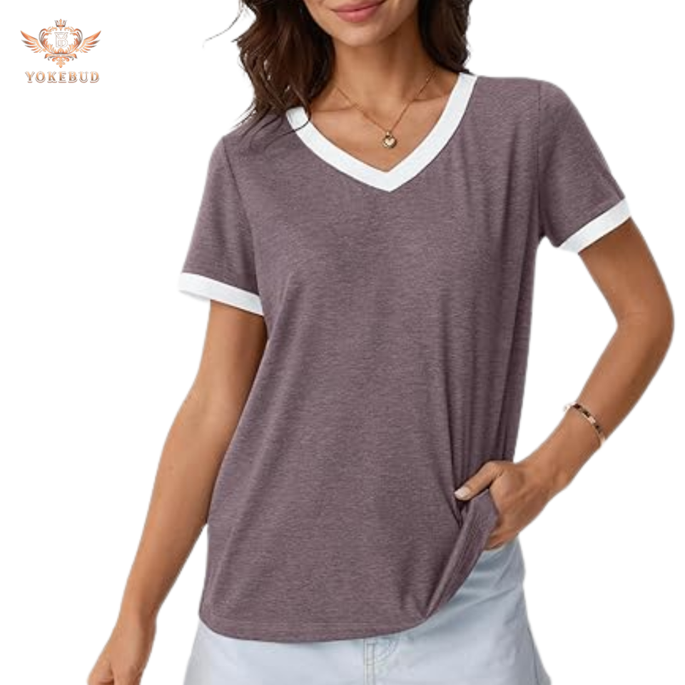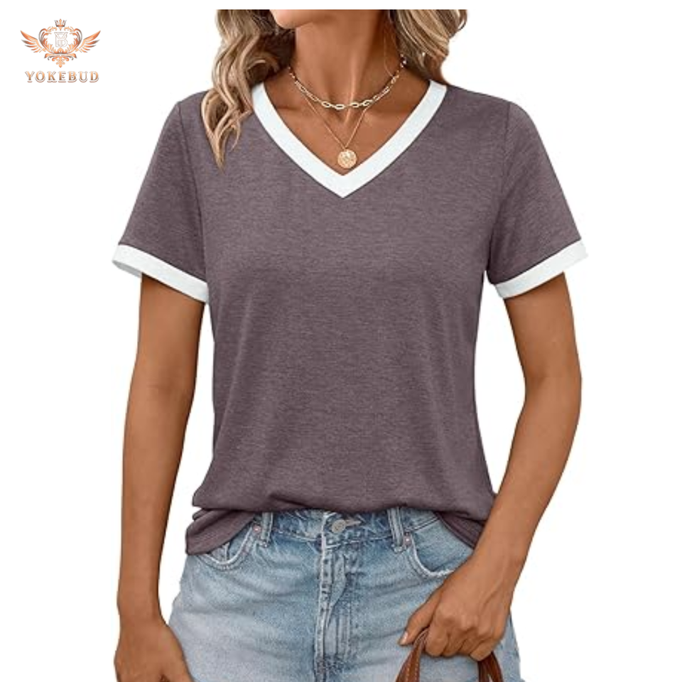 Women's Short Sleeve T-Shirts Summer Tops Casual Soft Tunic V Neck Basic Workout Clothes Spring Fashion Outfits 2025 From BD