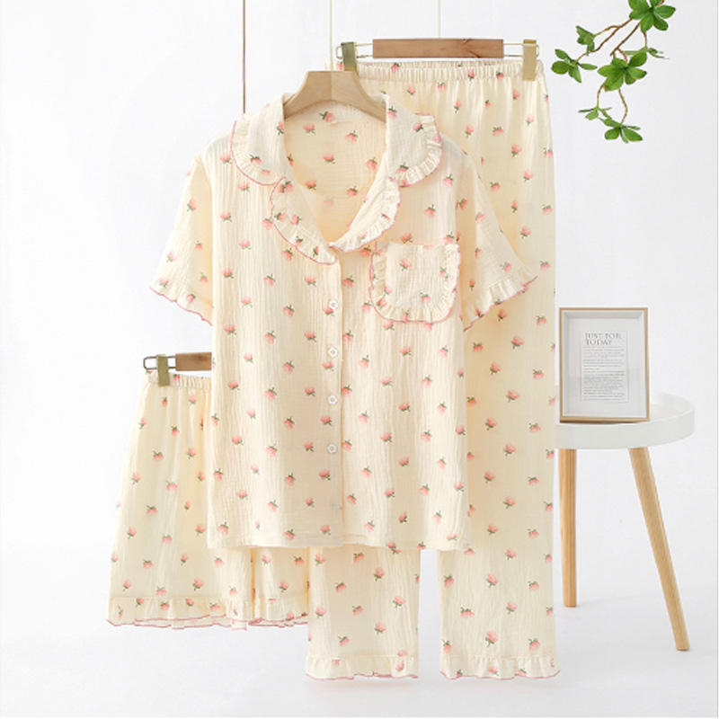 Women's Short-sleeved Trousers and Shorts Three-piece Spring Summer Autumn Comfortable Thin Wholesale Cotton Pajamas Home Wear