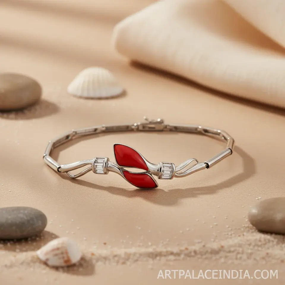 Women's Silver Coral Bracelet with Red Stone Fashion Charm Jewelry