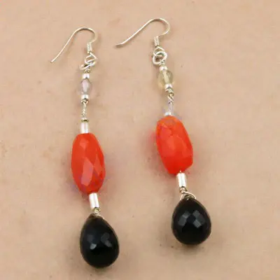Women's Silver Drop Earrings Red Black Gemstones Freshwater Pearl Emerald Gold Plated Flower Pattern Gold Plated Women's Jewelry