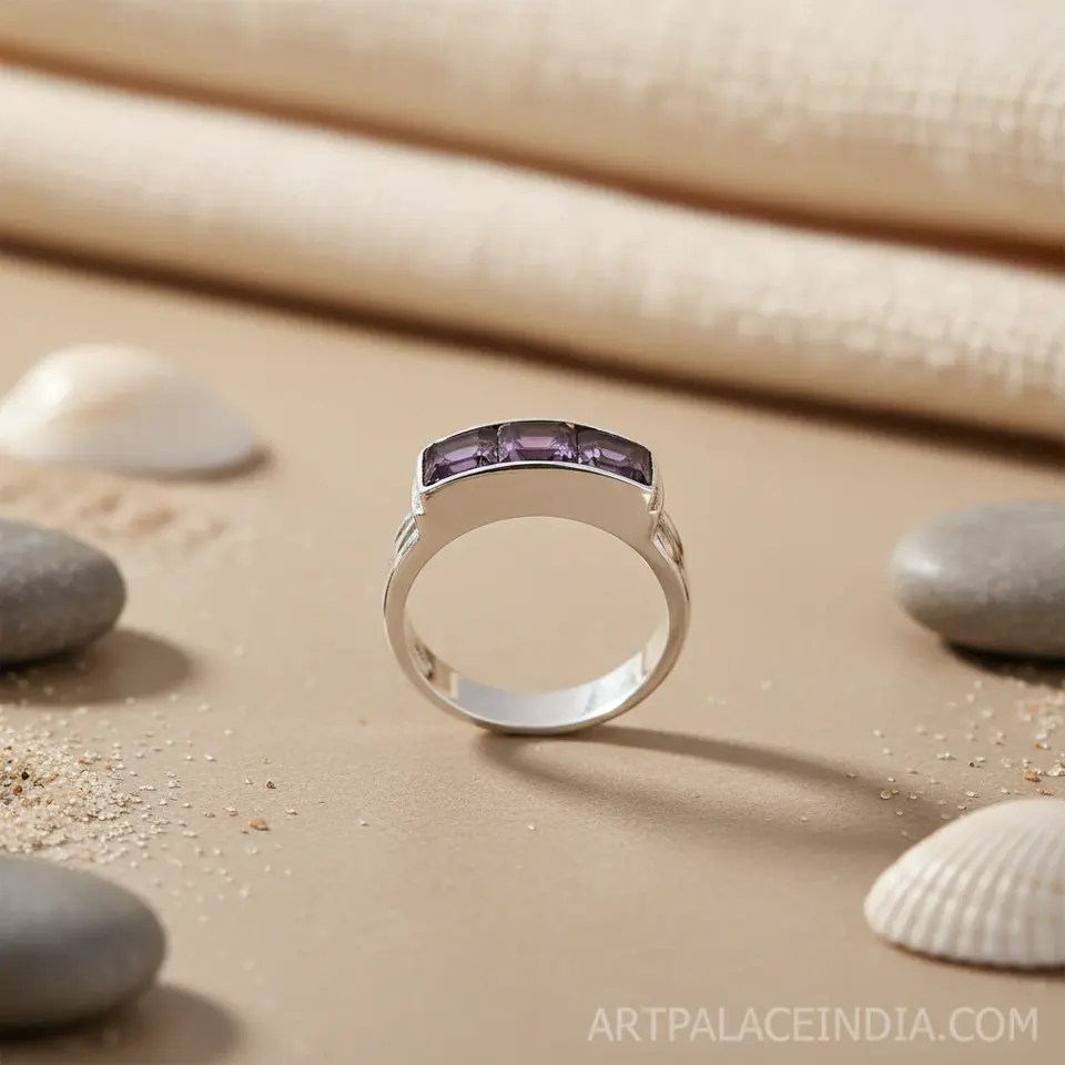 Women's Silver Ring with Amethyst Gemstones Elegant Fine Cuff Links & Tie Clips Gift Idea
