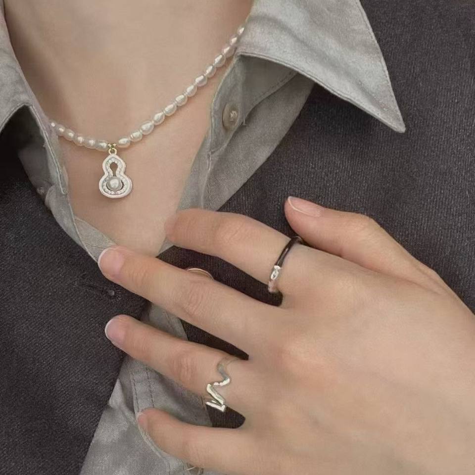 Women's Simple High-End Natural Freshwater Pearl Necklace Light Luxury Fine Pendant for Girlfriend Mother Gourd 'Fulu' Style