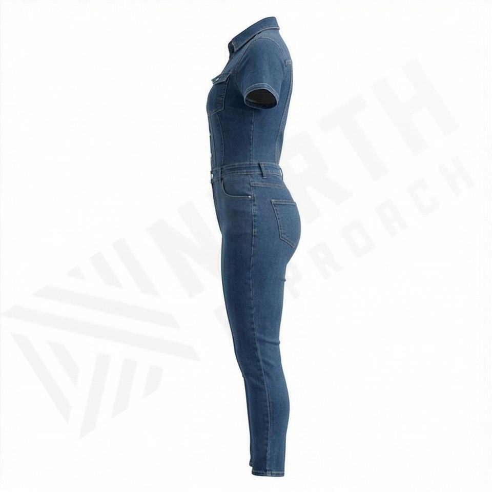 Women's Skinny Casual Denim Suit Breathable High Quality Two Piece Summer Set 100% Cotton Customized Color Fashion Trousers
