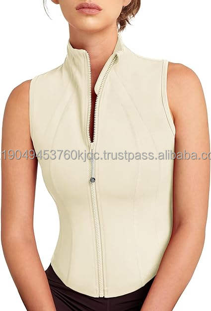 Women's Sleeveless Crop Shirts Summer Vest Workout Zip up Tank Tops Running Athletic Shirt Yoga Camis Jackets