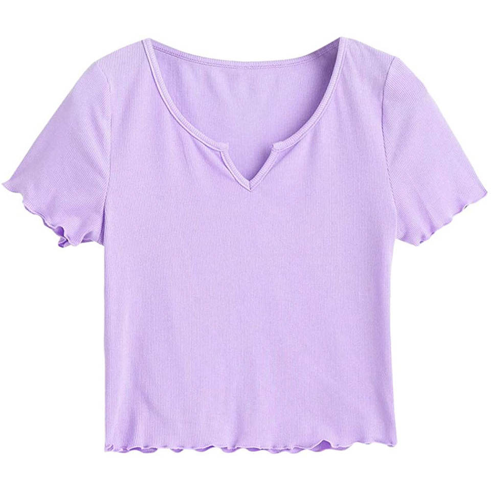 Product name:Women Crop v neck 1x1 rib T Shirt