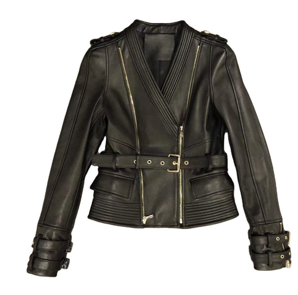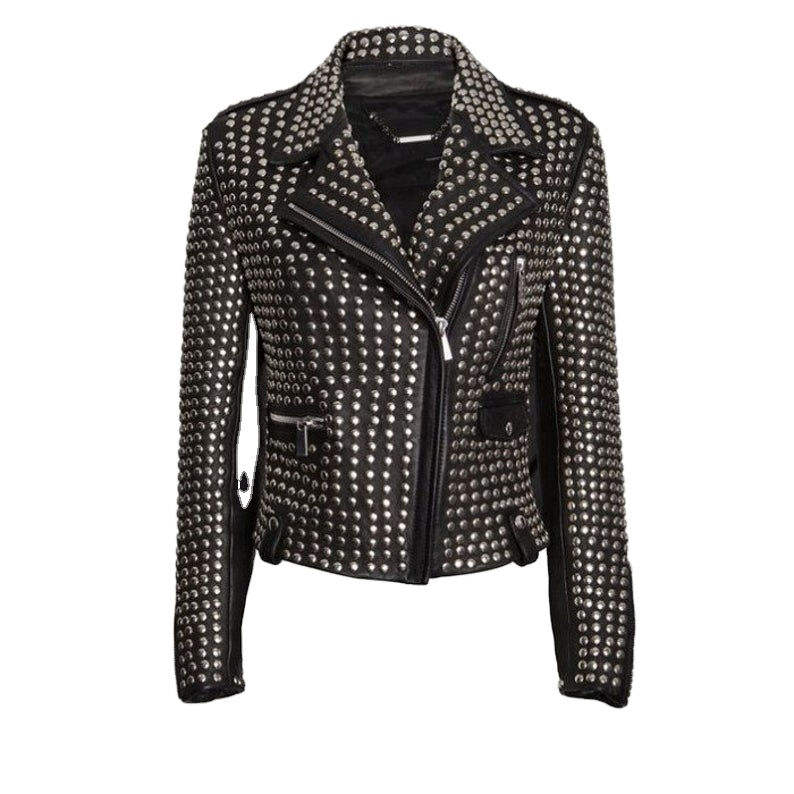 Women's Slim Fit Genuine Lambskin Leather Quilted Motorcycle Jacket with Cotton Filled Satin & Nylon Lining Waterproof