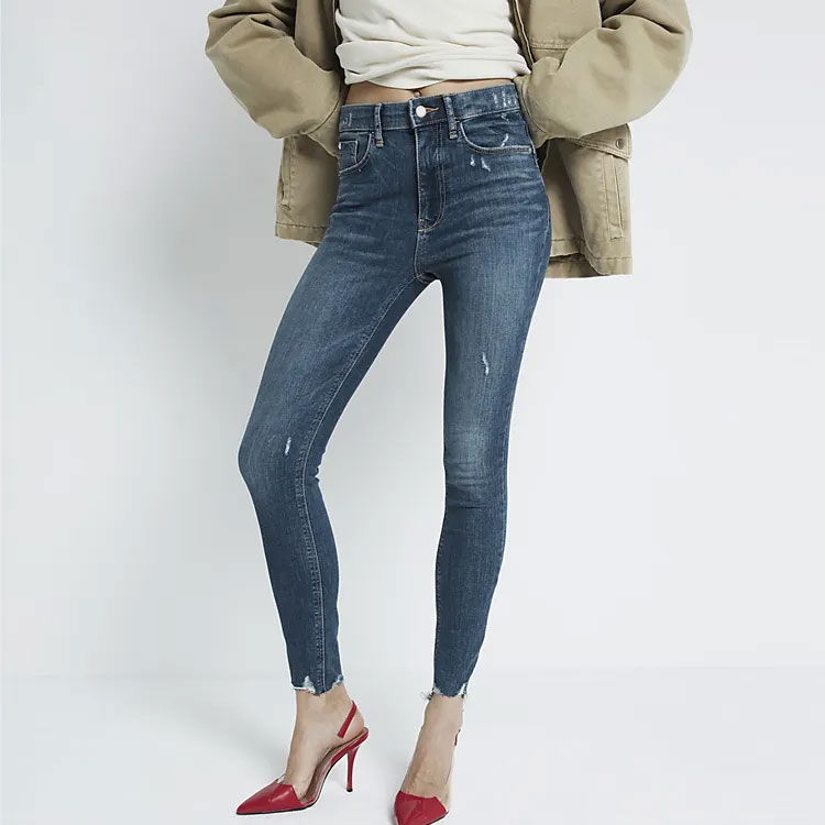 Women's Slim Fit Plus Size High Waist Elastic Denim Pants Wholesale Small Leg Jeans with Flat Front Style for Winter