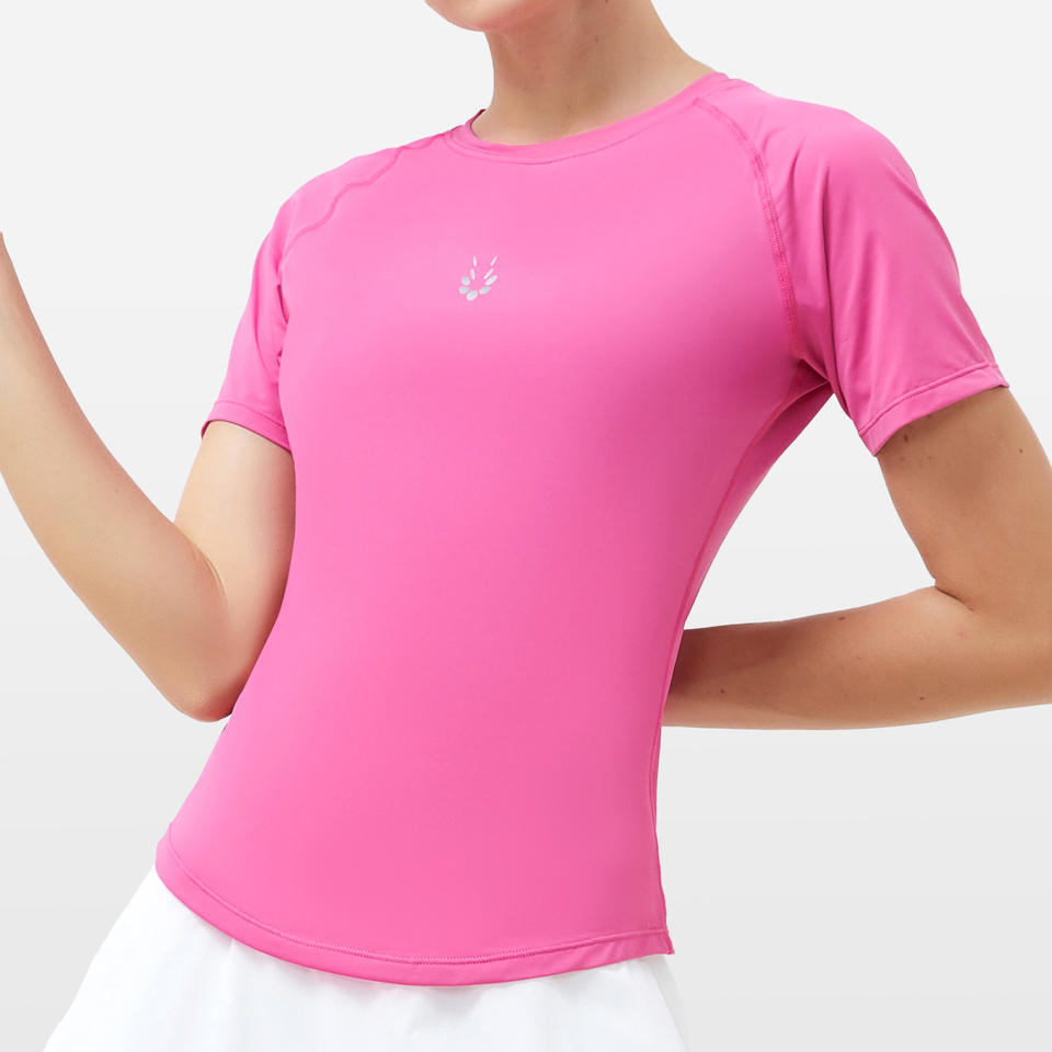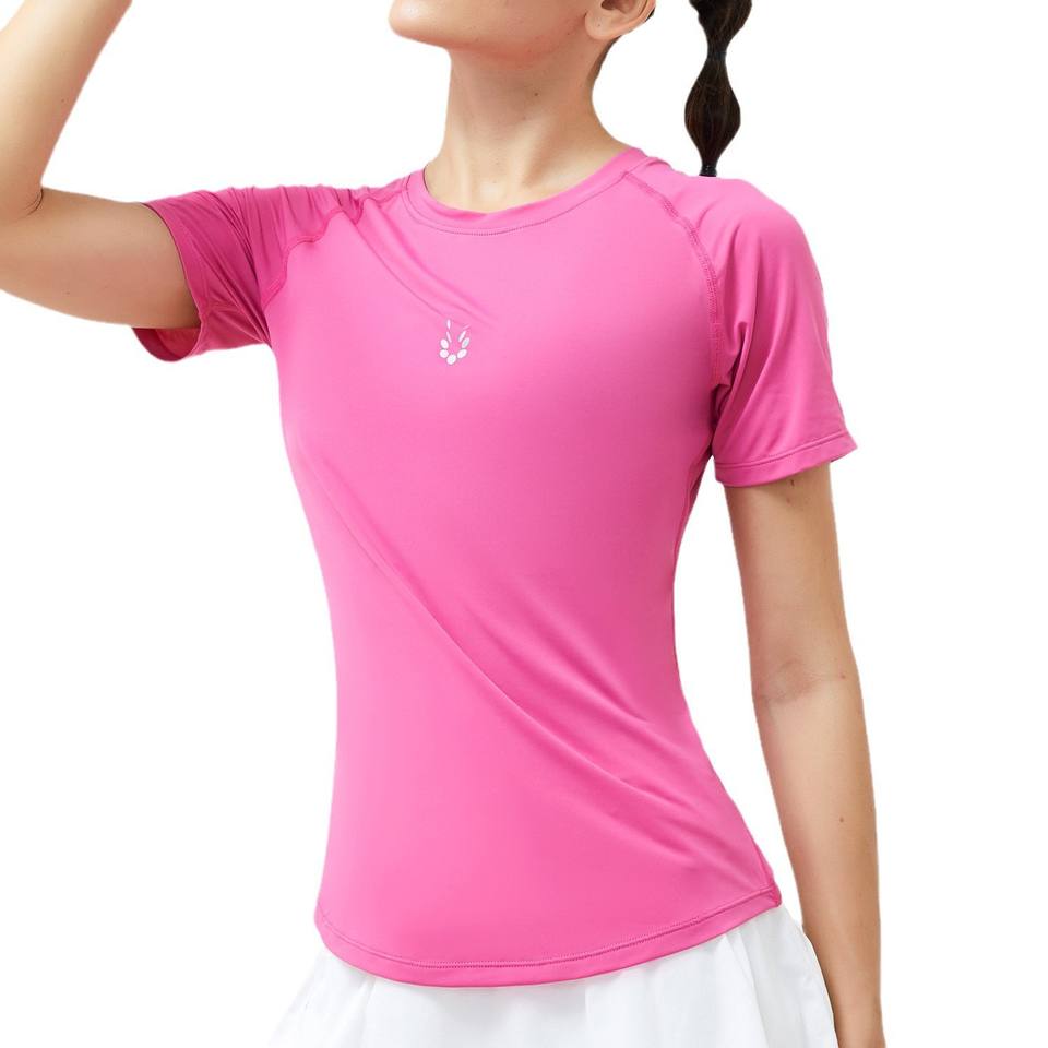 Women's Slim Neck Raglan Sleeve Sports T-Shirt Nude Fitness Clothes Quick-Drying Print Pattern Net Red Yoga Workout Clothing