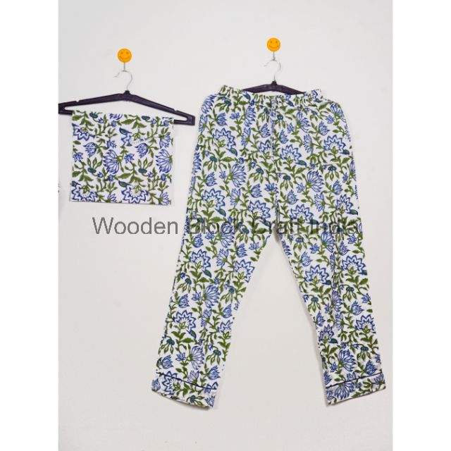 Women's Soft Cotton Nightgown Hand Block Floral Print Pajama Set Comfortable Sleepwear for All Seasons Perfect Gift For Har