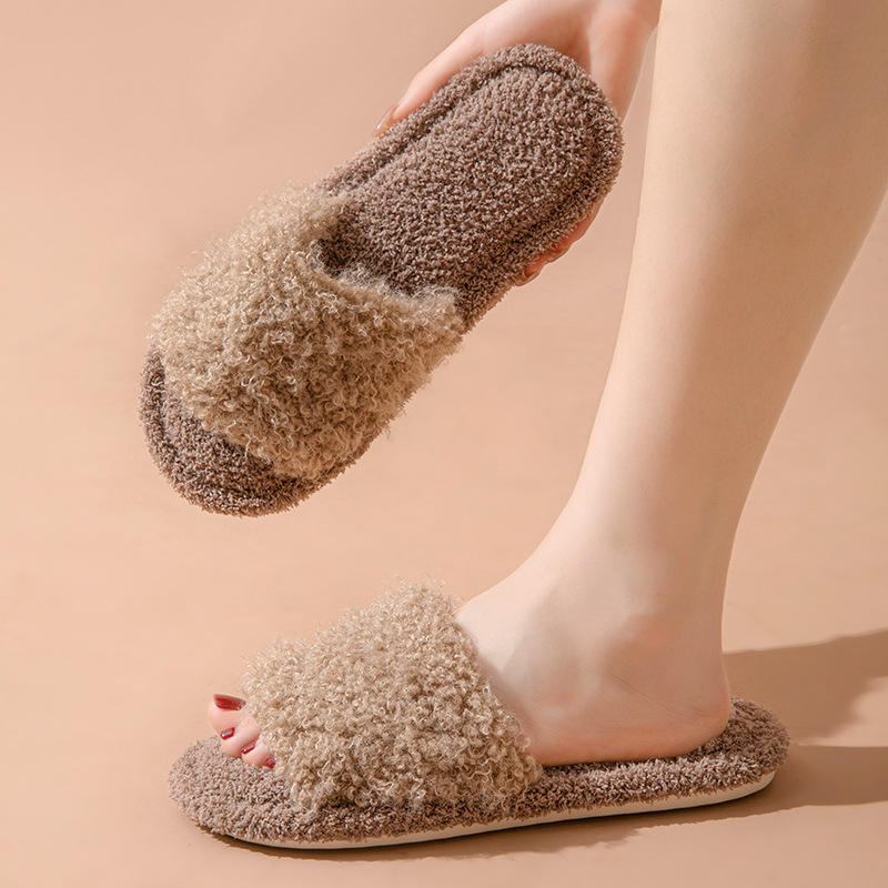 Women's Soft Plush TPR Fabric Slipper Winter Fashion Comfortable and Anti-Slip Open Toes for Spring and Autumn