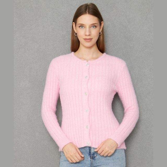 Women's Soft Textured Feather Thread Ribbed Knitwear Cardigan Buttoned Cardigan Warm Stylish and Comfortable ODM OEM Service