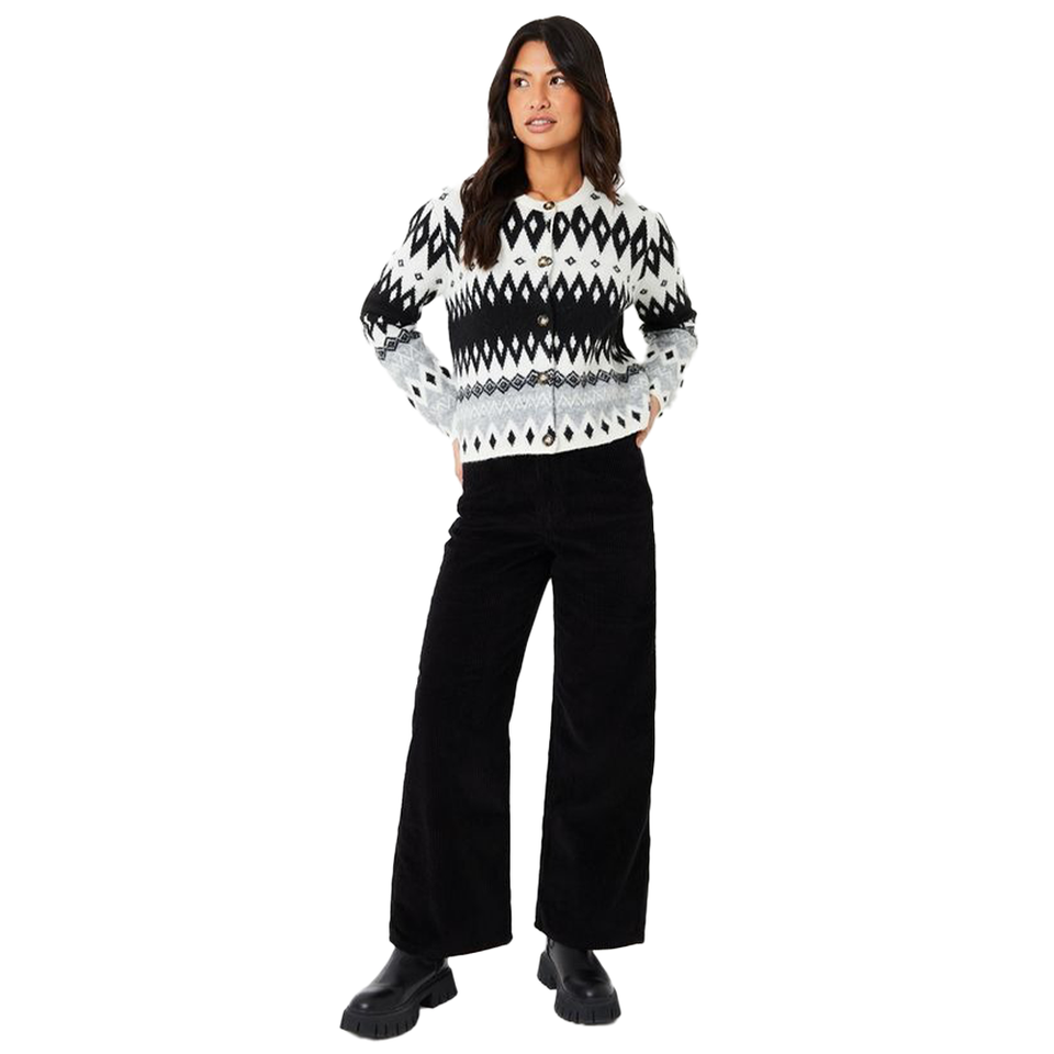 Women's Soft Wool Blend Fleece Knit Cardigan Black and Striped Oversized Button-Up Casual Sweater for Winter Front Logo