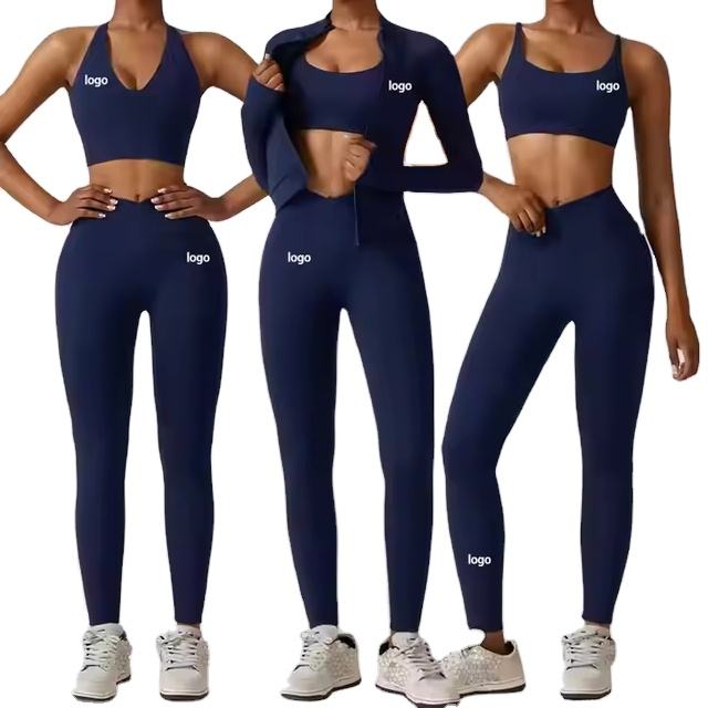 Women's Solid Active Wear 3-Piece Yoga Set Long Sleeve Sportswear High Waist Plus Size Gym Fitness Jacket & Leggings