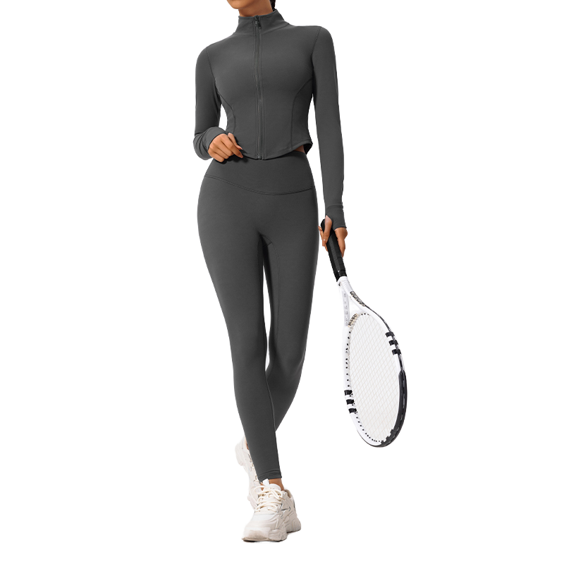 Women's Solid Color Breathable Yoga 2-Piece Set High Waist Elastic Waist Hip Lifting Tights Sleeveless Jacket Spandex/Nylon