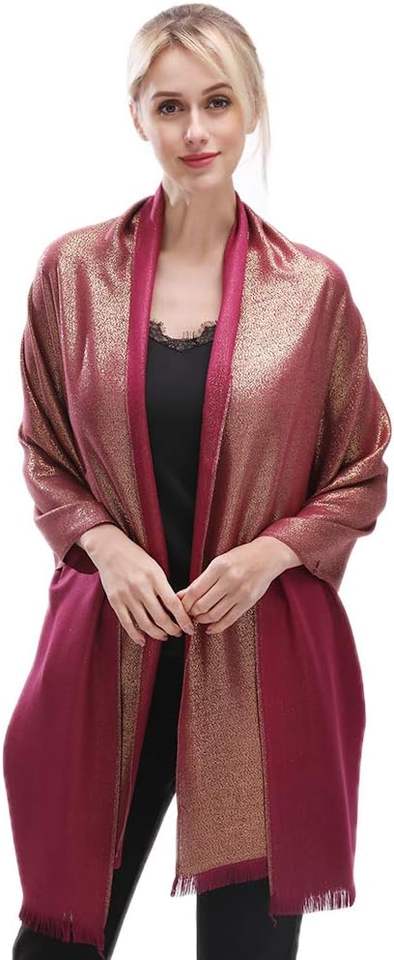 Women's Solid Color Long Cotton Shawl Lightweight Soft Metallic Sparkling Pashmina Wrap Evening Casual Wear Traditional Scarf