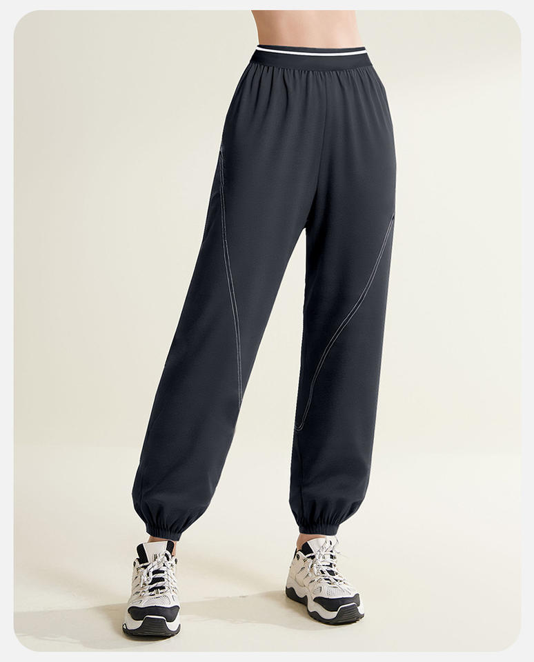 Women's Solid Four-Way Stretch Drawstring Casual Pants High Waisted Loose Straight Leg Yoga Jogger Trousers Pockets Full Length