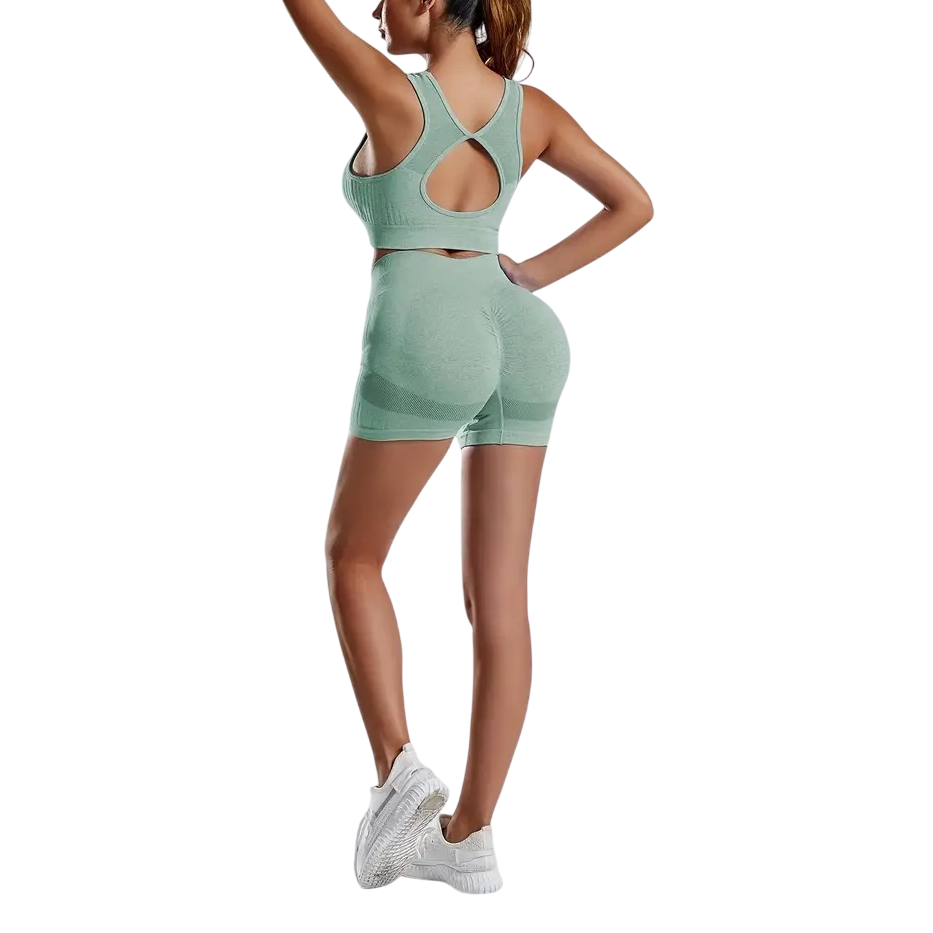 Women's Solid High-Waisted Elastic Waist 4-Way Stretch Yoga Shorts Racerback Tank Top 2-Piece Set Breathable Moisture Wicking