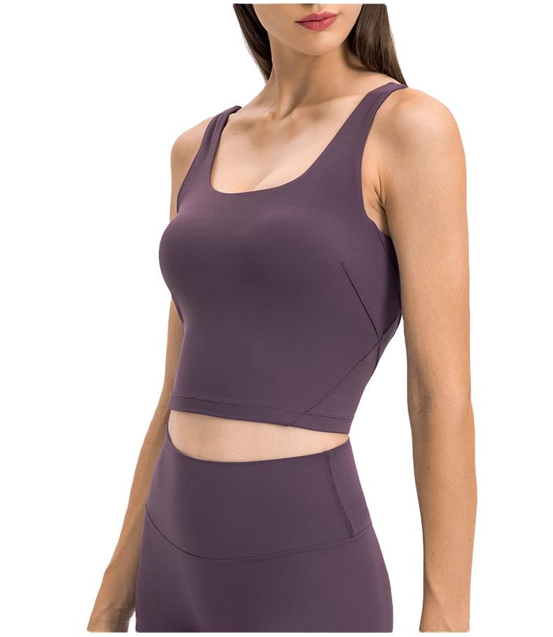 Women's Sports Yoga Bra U-Shaped Gym Sportwear Breathable Crystal Skin-Friendly Seamless Pads Front Logo Bare Sensation