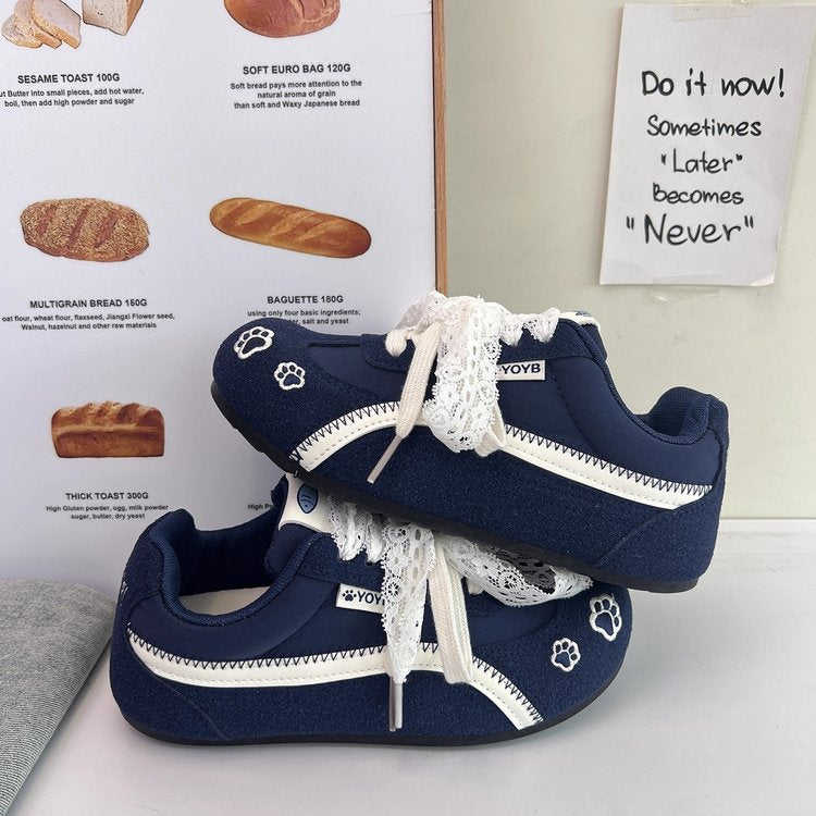 Women's Sporty Low-Top Rubber Sneakers 2025 Autumn Lace-up Embroidered Cushioning PU Lighted Upper Height Less 10cm
