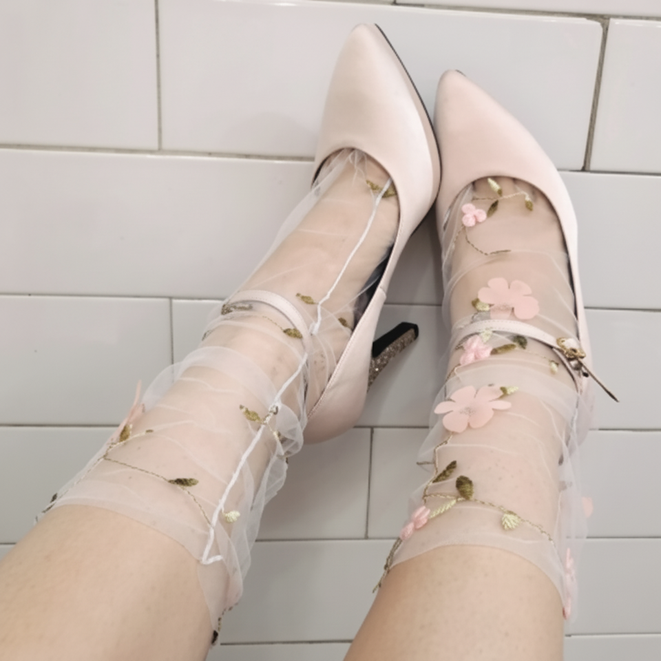 Women's Spring Summer 3D Embroidered Flower Knee Socks Mesh Design Comfortable and Stylish