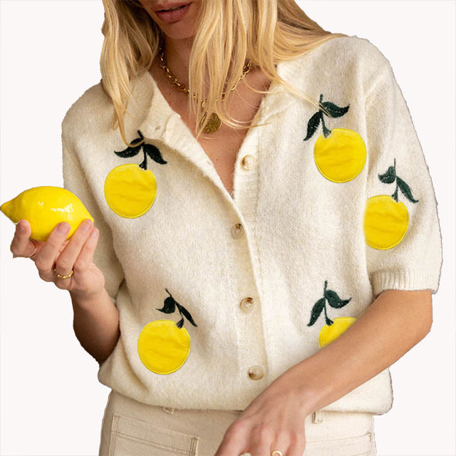 Women's Spring Summer New Arrival Sweet Style Short Sleeve Casual Customizable Knit Sweater Cardigan Top