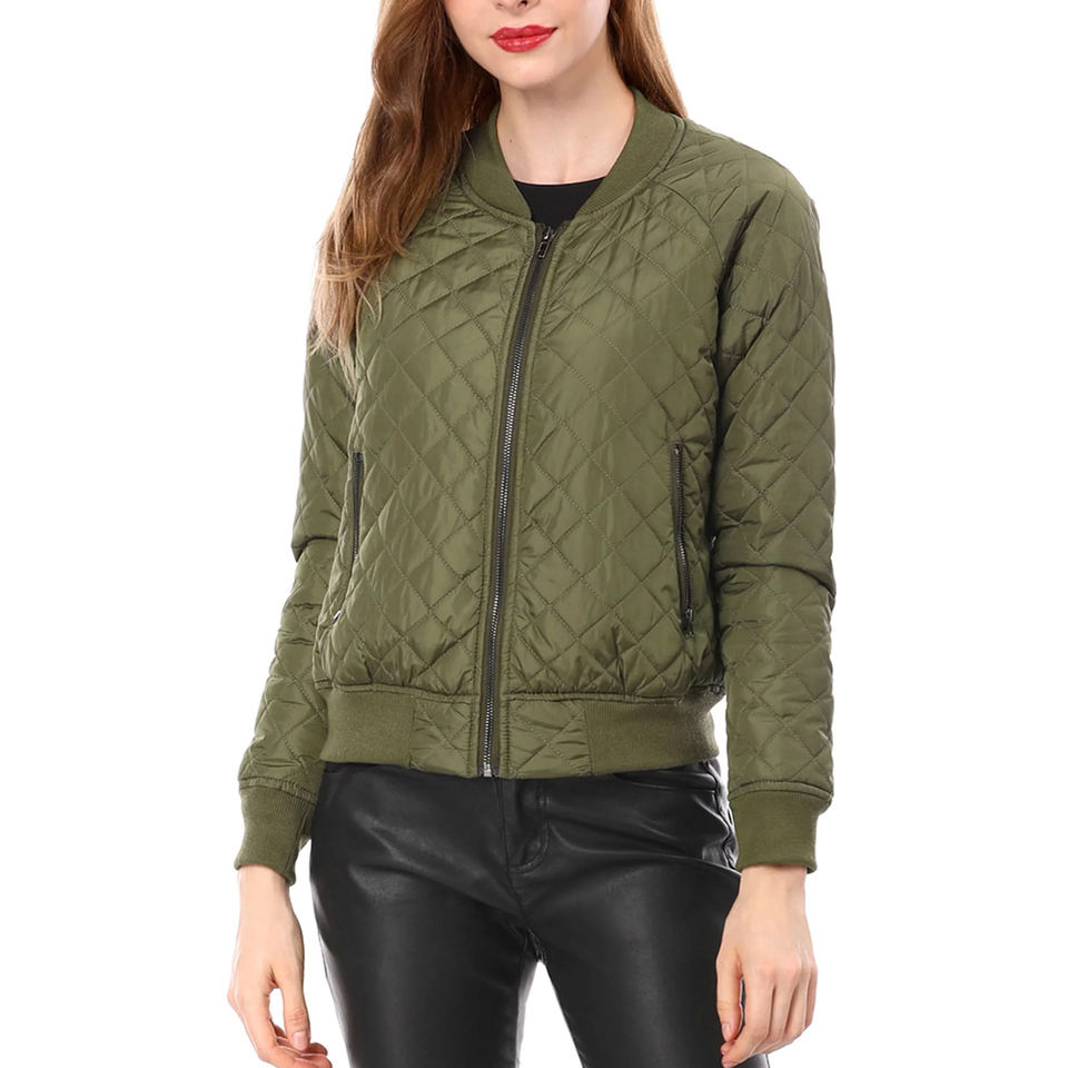 Women's Stand Collar Zip up Full Sleeves Bomber Quilted Jacket Top Design Good Quality Women Best Design Jacket