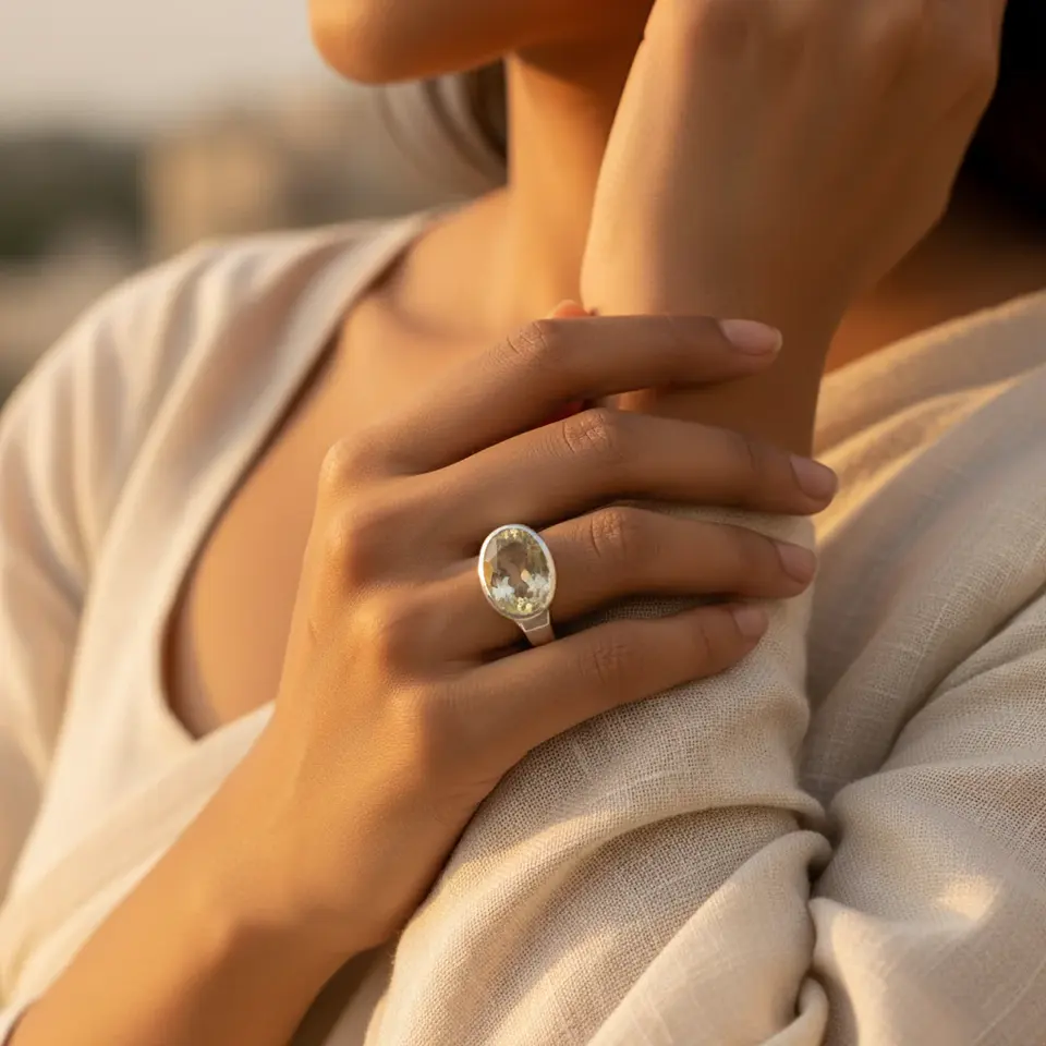 Women's Statement Jewelry Silver Citrine Gemstone Ring Fine Cuff Links & Tie Clips