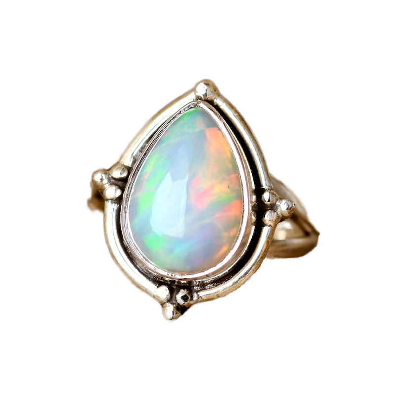 Women's Sterling Silver Opal Teardrop Gemstone Ring Elegant Pear Shape Jewelry for Women