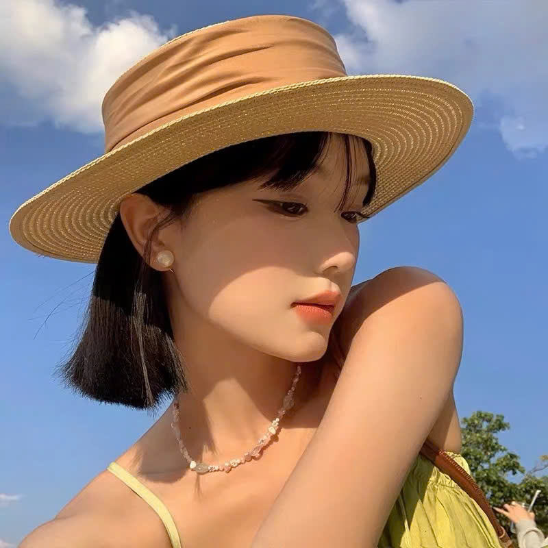 Women's Straw Hat, Travel Straw Hat with High Quality Satin Silk, Luxurious Soft Form, Super Hot Virtual Life, Anti-Lost Form
