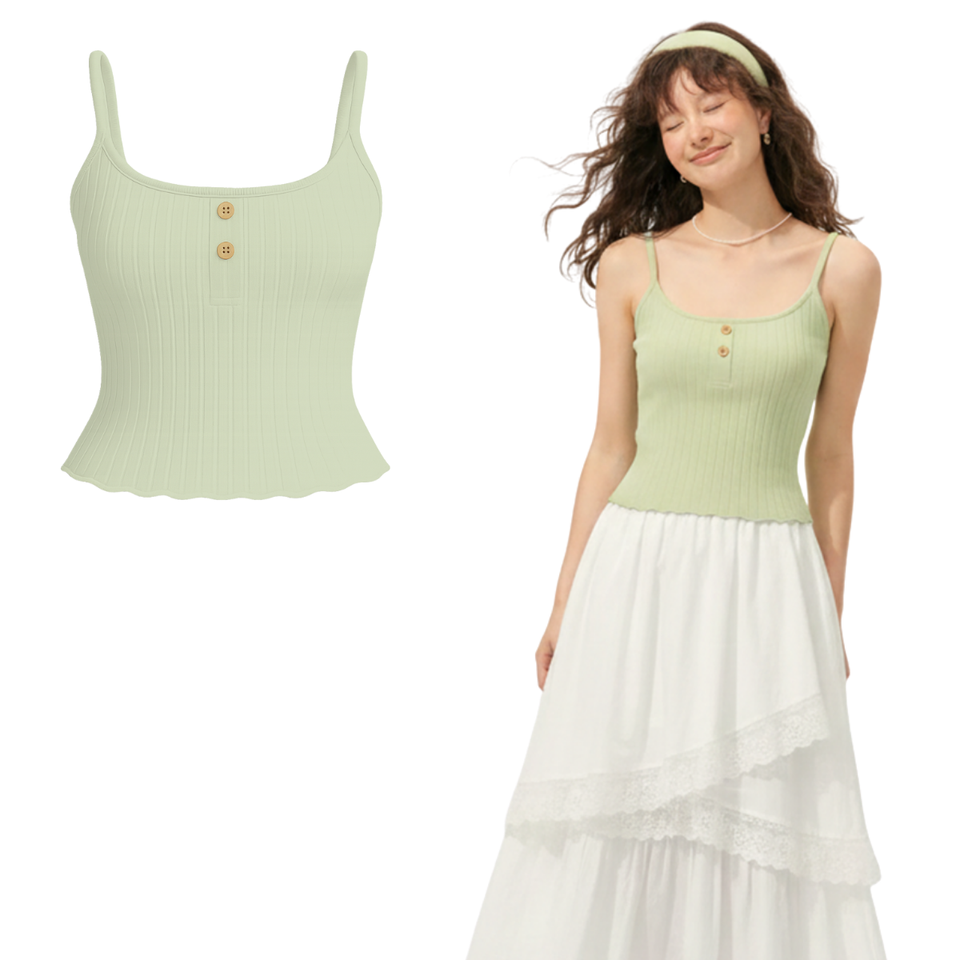 Women's Solid Stretch Ribbed Knit Sweetheart Cami with Button Front Summer Casual Top Knee Length 100% Cotton Private Label