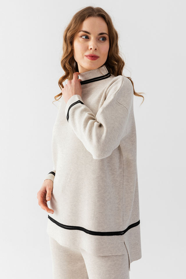 Women's Striped Knitwear Sports Two-piece Oversize long-sleeved Sweater and Trousers Stylish Set for Daily Yoga and Walking