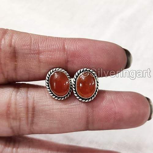 Women's Stud Earring Natural Carnelian Gemstone valentine Christmas Gift Handmade Jewelry 925 Sterling Silver Stud Earring