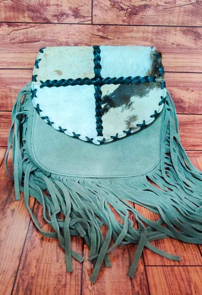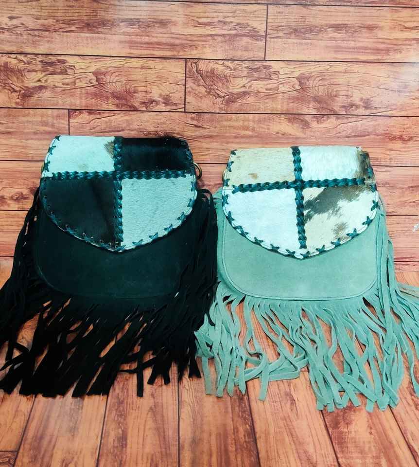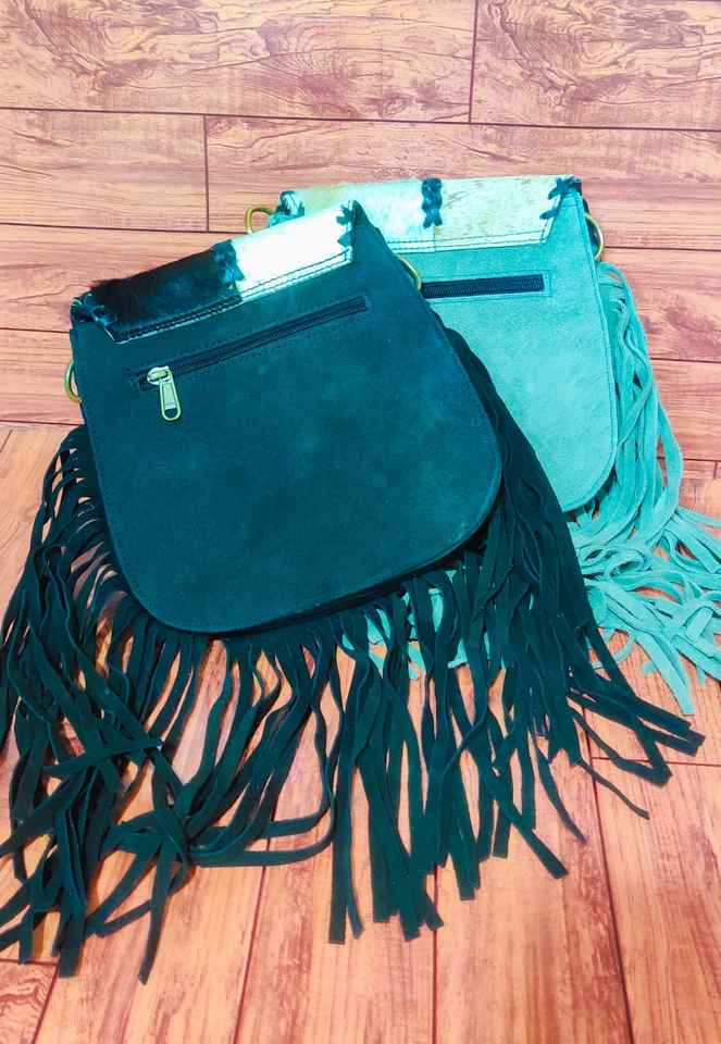 Women's Stylish Bohemian Cowhide Fur Crossbody Handbag Large Capacity Nylon Leather Fringe Tassel Embellishment Button Chain