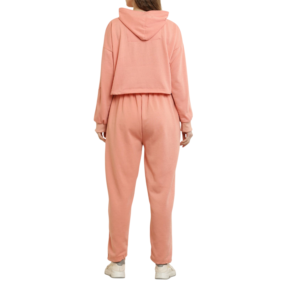 Women's Stylish Casual Winter 2-Piece Set Crop Top Pullover Hoodie and Jogger Tracksuit Trendy Short Length 100% Cotton 2026