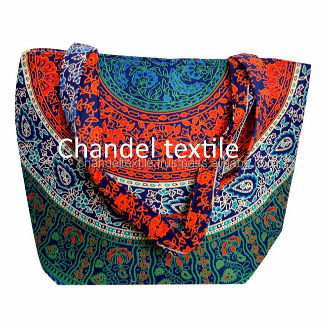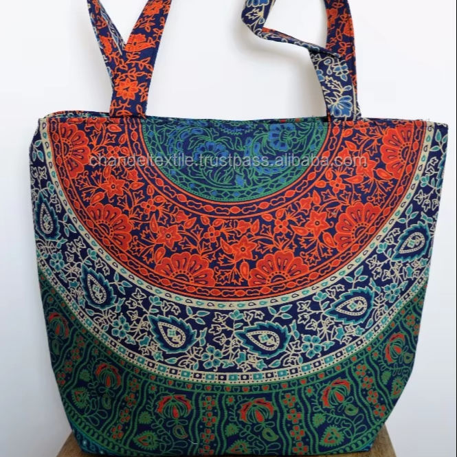 Women's Stylish Cotton Mandala Tote Bag Six-Color Fashionable Shoulder Satchel Long Handle Canvas Handbag Purse for Shopping