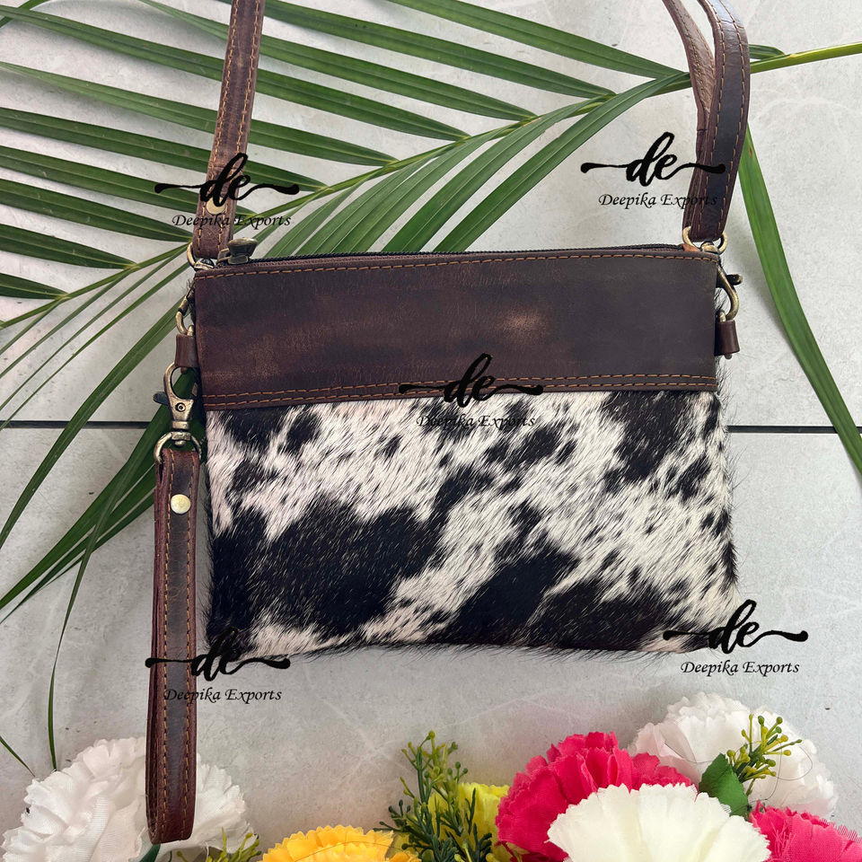 Women's Stylish Hair on Fur Leather Handbag Sling Bag Purse Shopping Bag Stylish Cowhide Fur Bag