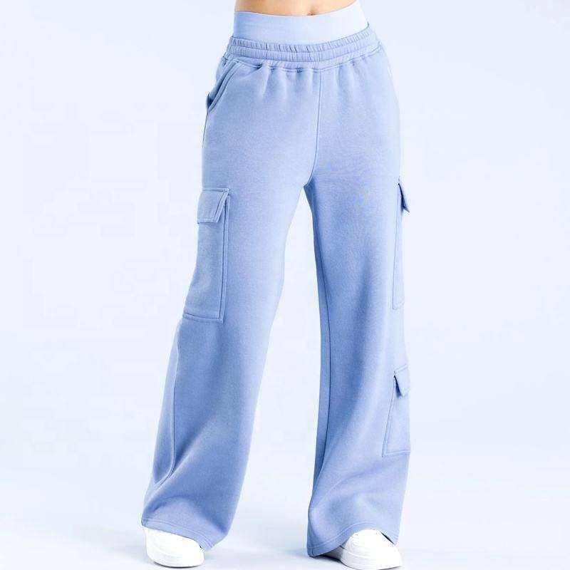 Women's Hip Hop Flat Front Mid-Waist Wide Leg Cargo Pants 100% Cotton Breathable Comfortable Drawstring Closure Wholesale