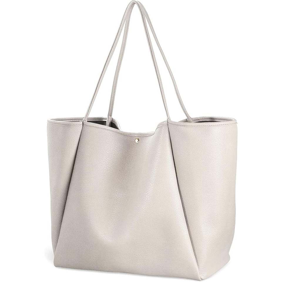 Women's Stylish PU Leather Tote Bag Large Capacity Minimal Design Shoulder Handbag Two Straps Stripe for Everyday Office
