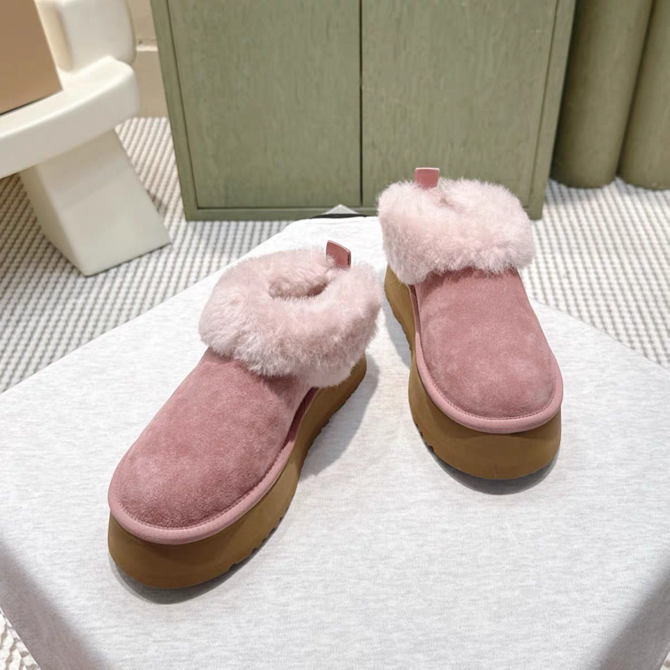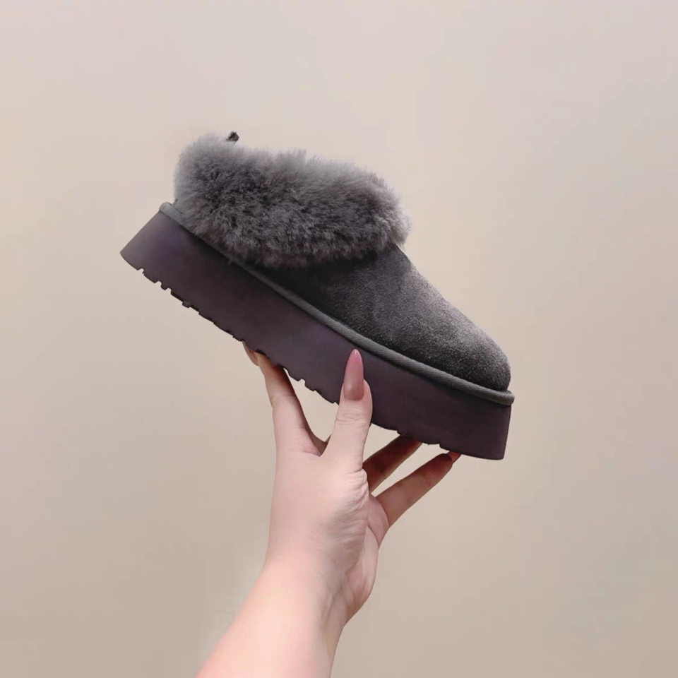 Women's Suede Genuine Platform Mules Winter Warm Fashion Rubber Outsole Wool Midsole Lazy Cozy Indoor Outdoor Fur