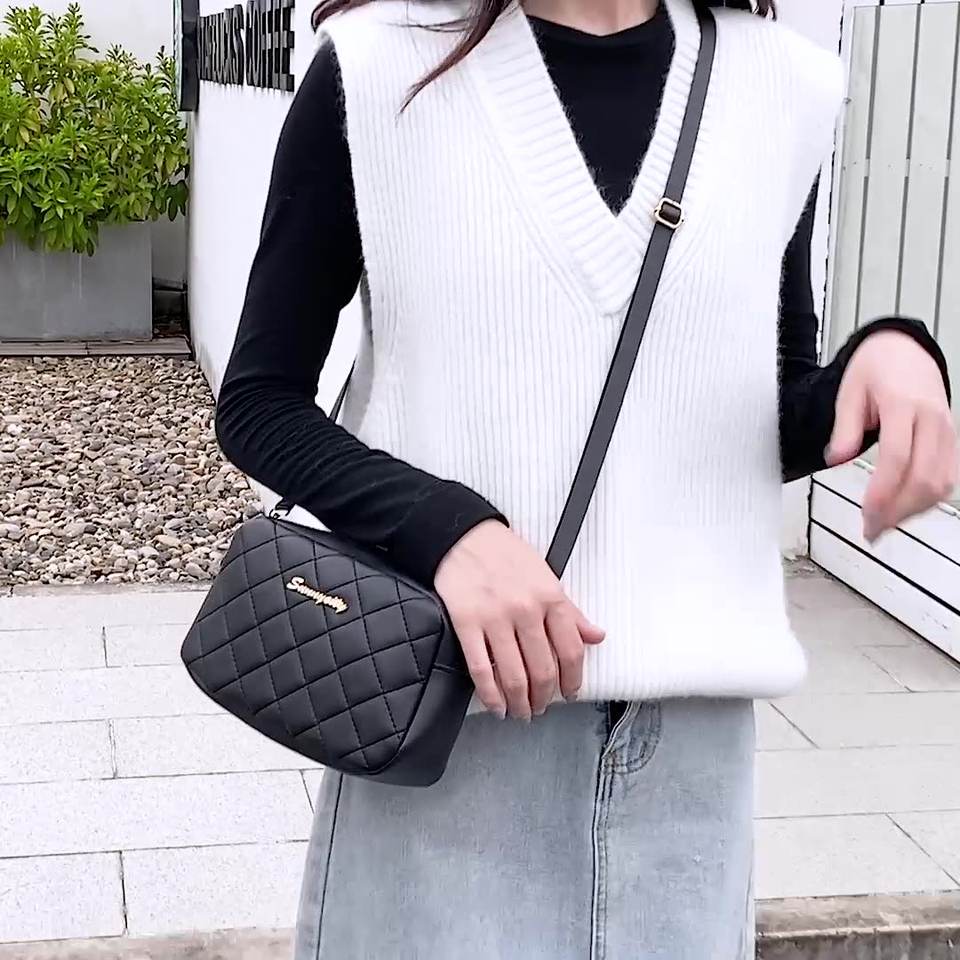 Women's Summer All-Season Diamond Check Embroidered Camera Crossbody Tote Shoulder Bag Fashion PU Ladies